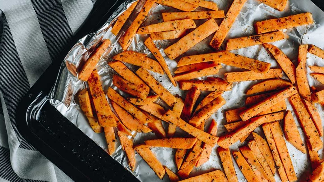 وصفة سهلة لعمل أصابع البطاطا الحلوة بالروزماري في الفرن